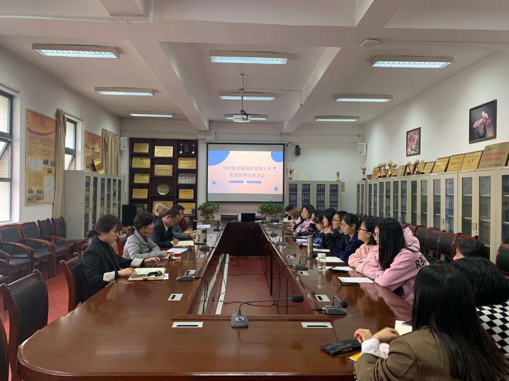 为跟进了解“卓越班”新生思想动态,提升教育教学质量,培育优良学风,营造积极向上的教学氛围,继赴日本文化经济学院、经济金融学院调研卓越人才培养工作后,37000cm威尼斯于10月13日下午,在教学楼H206会议室召开了2021级卓越国际旅游人才实验班师生座谈会,院长李开宇、副院长苏红霞、教研室主任杨军辉、辛健、卓越班班主任黄清燕及2021级“卓越班”学生参加了座谈会。座谈会由院长李开宇主持。