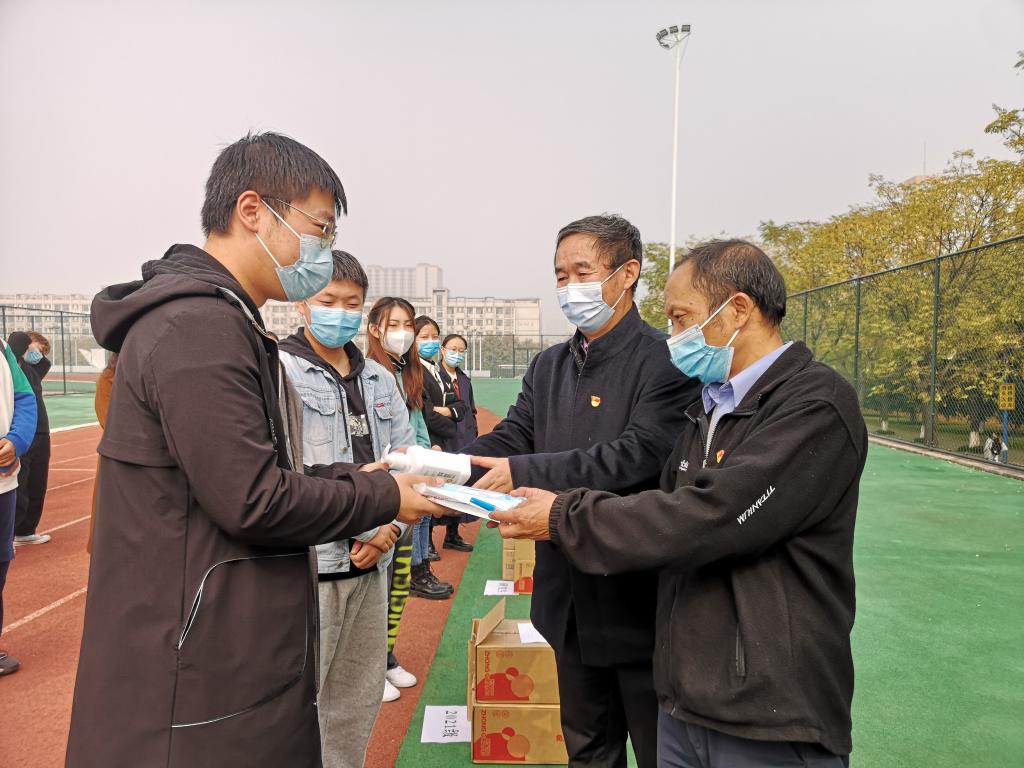 随后,书记、院长和辅导员分组、分批为宿舍长一一发放防疫物资。本次活动严格遵循防疫相关规定有序开展,并在活动中累计发放180瓶洗手液、180瓶免洗凝胶、360只温度计和360包口罩。