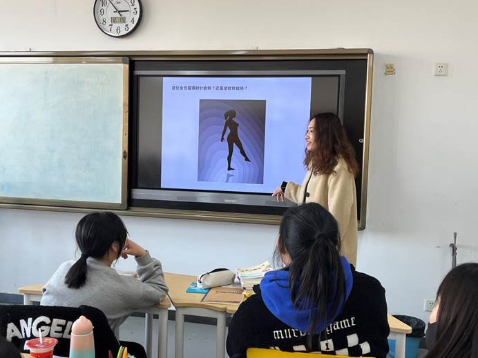 讲座过程中,刘佳老师以大量的心理测试,如“芭蕾女孩到底是顺时针还是逆时针旋转”“火车到底是进站还是出站”等与同学们积极互动,启发学生对照试验结果了解自身心理健康状况。