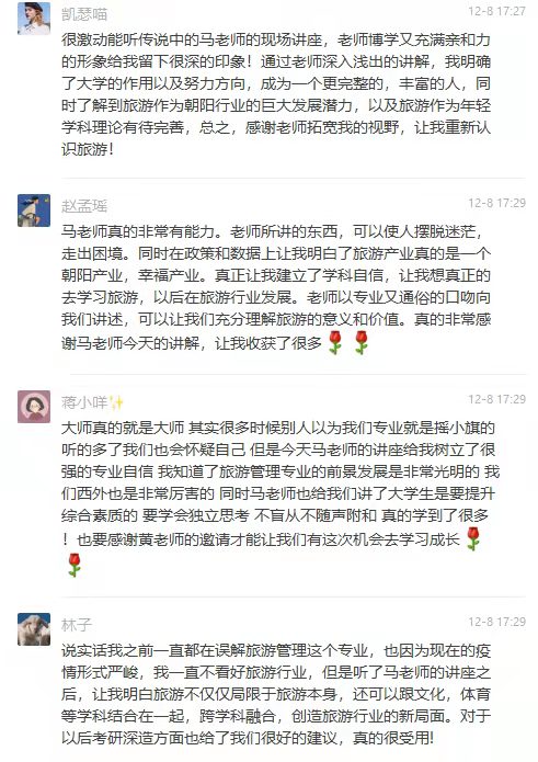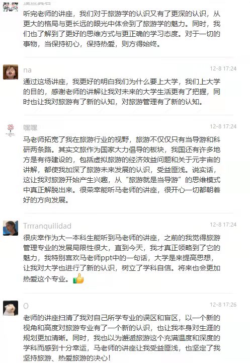 报告结束后,同学们踊跃提问,马耀峰教授一一为大家答疑解惑。最后由苏红霞副院长对此次报告进行总结,她指出马教授在教学、科学研究过程中的专注、匠心的精神值得每一个旅游学子学习和传承。2021级卓越国际旅游人才实验班全体同学纷纷表示很激动和幸运能在大一阶段听到这样的讲座,极大地帮助大家建立了专业认同、树立了学科自信,坚定旅游人对专业的认知和热爱。