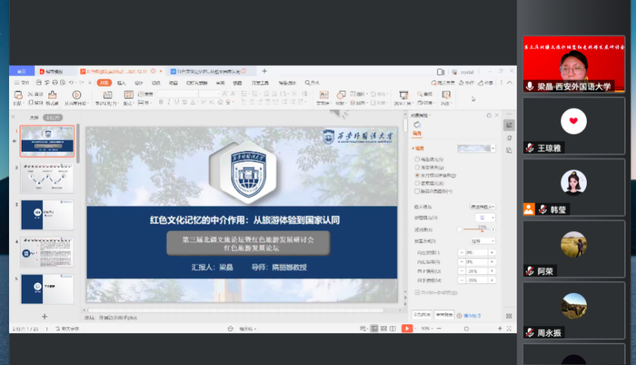 威尼斯官网旅游管理专业研究生积极参与,2019级研究生梁晶在会议上进行学术报告分享,发言题目为《红色文化记忆的中介作用:从旅游体验到国家认同》。