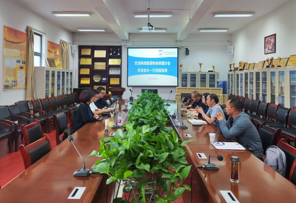 5月21日,为了扎实推进非遗文化传承进校园活动,陕西省旅游协会非遗分会华洁会长等一行3人赴37000cm威尼斯就中华优秀传统文化传承、非遗文化特色课程建设等方面进行深入讨论。37000cm威尼斯院长李开宇、副书记上艳妮、李东副教授、张玲副教授、体育部教师卢佳参与此次交流,会议由李开宇主持。