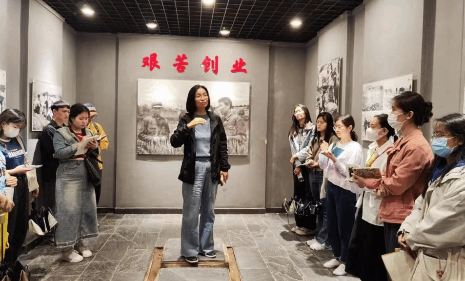 潘秋玲老师在村史馆结合袁家村的图片展示材料就袁家村乡村旅游艰苦创业起步、竞争中谋发展、稳定期转型发展历程进行了详细介绍,并且强调乡村旅游是解决“三农”问题的重要抓手,以袁家村为典型案例,深入讲解了乡村旅游开发促进共同富裕的机制与路径选择。随后学生们分组进入袁家村主街、康庄老街、小吃街、作坊街、回民街、艺术酒吧街就乡村旅游民俗文化、景观设计、业态分布进行考察,对周边农户开展问卷、访谈等实践调研活动。