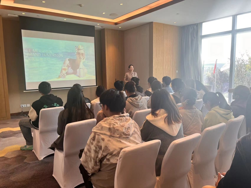 西安浐灞艾美酒店是一个融合了悠久历史和现代文化的高端住宿设施。学生们在浐灞艾美酒店人力资源总监Celine Zhang张倩的引导下,听取了关于酒店企业文化、服务流程及客户管理的介绍。了解到艾美如何定位目标宾客,并学习了该酒店如何通过其独特的色彩运用和设计灵感,来吸引和服务宾客。此外,在丰富的茶歇小食中,在原威尼斯官网酒管专业毕业后入职艾美的学姐的参访讲解中,学生们感受到了酒店贴心而热情的迎客之道,也体验到了酒店为提供极致客户体验所做的努力。