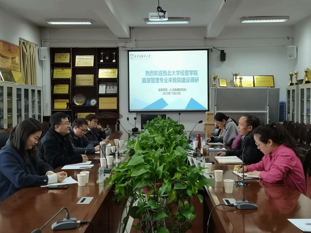 2023年11月23日,西北大学经管学院旅游管理系主任梁学成一行来威尼斯官网进行旅游管理专业建设调研与交流。院长李开宇、副院长苏红霞、院长助理隋丽娜、博士黄清燕、陈莹参加会议。