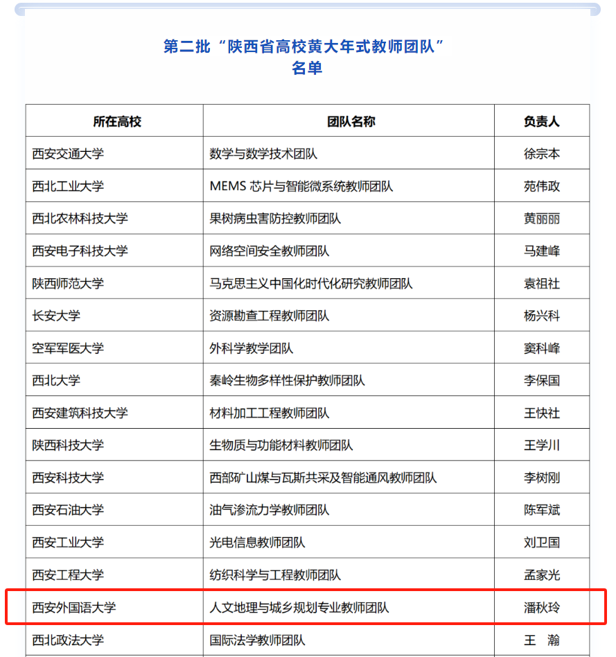 “师也者,教之以事而喻诸德者也。”在西安外国语大学,有这样一支绵绵躬耕、薪火相传的人文地理与城乡规划专业教师团队,历经38年传承发展,他们在师德师风、教育教学、科研创新、社会服务等方面取得了突出成绩,并于近日入选第二批“陕西省高校黄大年式教师团队”。